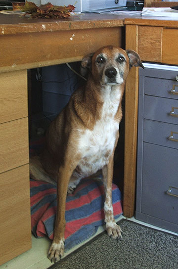 Tinker’s dominion is well under the table in the office. His duties vary, including security, entertainment, and one of his favourites - being a poser (model!). He is a real key player.