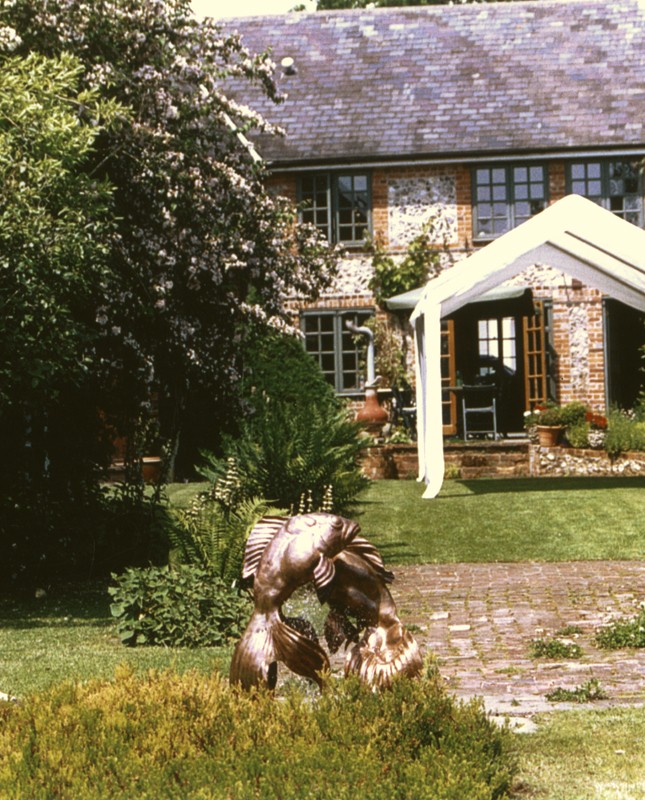 These two fishes are made up of panels of copper sheet beaten into shape using a pitch block or sand bag, then welded together and 'dressed' back so the joints become part of the 'modelled' surface.